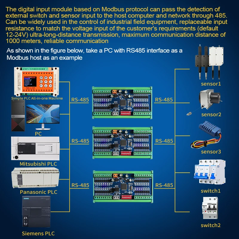 Giao diện truyền có thể điều khiển từ xa, dây ba sợi là ABD, và việc nối dây rất thuận tiện. Đầu vào và đầu ra có thể được kiểm soát để phát hiện. Những ưu điểm về khả năng miễn nhiễm nhiễu tốt, khoảng cách truyền dài và khả năng đa trạm làm cho nó trở thành giao diện nối tiếp được ưu tiên. Khả năng chống nhiễu chung được tăng cường. Tốc độ truyền dữ liệu tối đa là 10Mbps. Các dịp áp dụng: tự động hóa quy trình (hóa học, sản xuất bia, giấy), tự động hóa nhà máy (sản xuất ô tô, gia công kim loại), HVAC, an ninh, điều khiển động cơ, điều khiển chuyển động, nhà máy gốm sứ, nhà máy điện, nhà máy chế biến thức ăn chăn nuôi, trang trại lớn. |